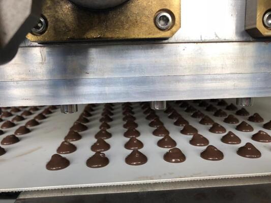 This production line is specially optimized for the molding stage of chocolate chips, utilizing patented depositing technology to ensure uniform product weight and flat bottoms. It is compatible with various recipes, including dark chocolate, milk chocolate, and cocoa butter alternatives, allowing flexible switching. The energy-efficient design reduces power consumption by up to 30%, and is equipped with a data collection system to support digital production management.