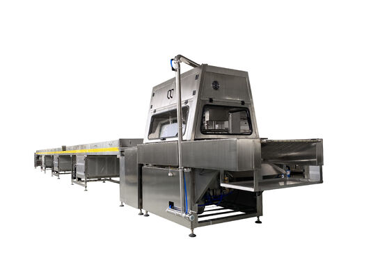এই উত্পাদন লাইনটি ডার্ক চকোলেট, দুধ চকোলেট এবং যৌগ চকোলেট সমর্থন করে, একটি চকচকে, প্রিমিয়াম সমাপ্তি অর্জনের জন্য ঐচ্ছিক পলিশিং এবং শীতল সিস্টেম সহ।