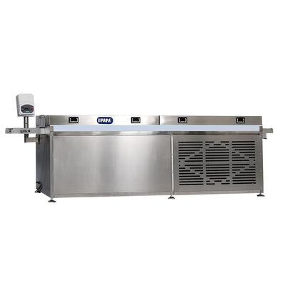 Small Commercial tunnel cooling chocolate enrobing machine consists of small chocolate enrober and 3P Chocolate cooling tunnel. The Commercial type chocolate enrobing machine with cooling tunnel is designed for making chocolate coated products, such as protein bar, energy bar, cereal bar, granola bars, energy ball, date ball, truffles, cookies, biscuits, crackers, pies, cakes, breads, wafer sticks, egg rolls, fruits, nuts, candy bars, donuts and so on.