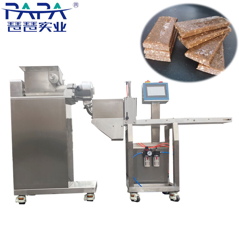 Protein Bar extruder is a upgrade type which is more suitable for making various bars cookies like date bars, energy bars, fruit bars, protein bars, chocolate bars, vegan bars, Cereal bar, Muesli bars, Nutritious bars, snack bars and so on. The bar Extruder and the cutter are independent and controlled by PLC touch panel, so it is easy for operating and working in stable condition. Protein Bar extruder is our new designed extruder machines specially for making hard dough or sticky dough bars. The horizontal protein bar extruder has three extruding screw device to guarantee the dough extruded successfully, the horizontal design guarantees the perfect bar shape. The horizontal protein bar extruding machine can adjust the bar length by cutter, and bar width and thickness by change moulds.